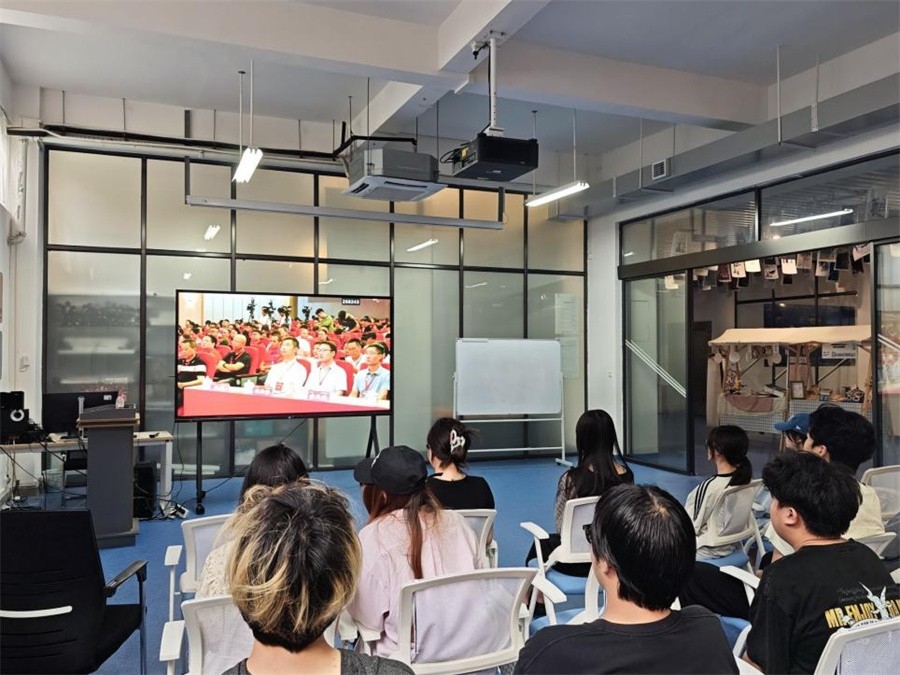 创新创业学院组织师生通过网络直播与主会场联动。供图/马湫翔