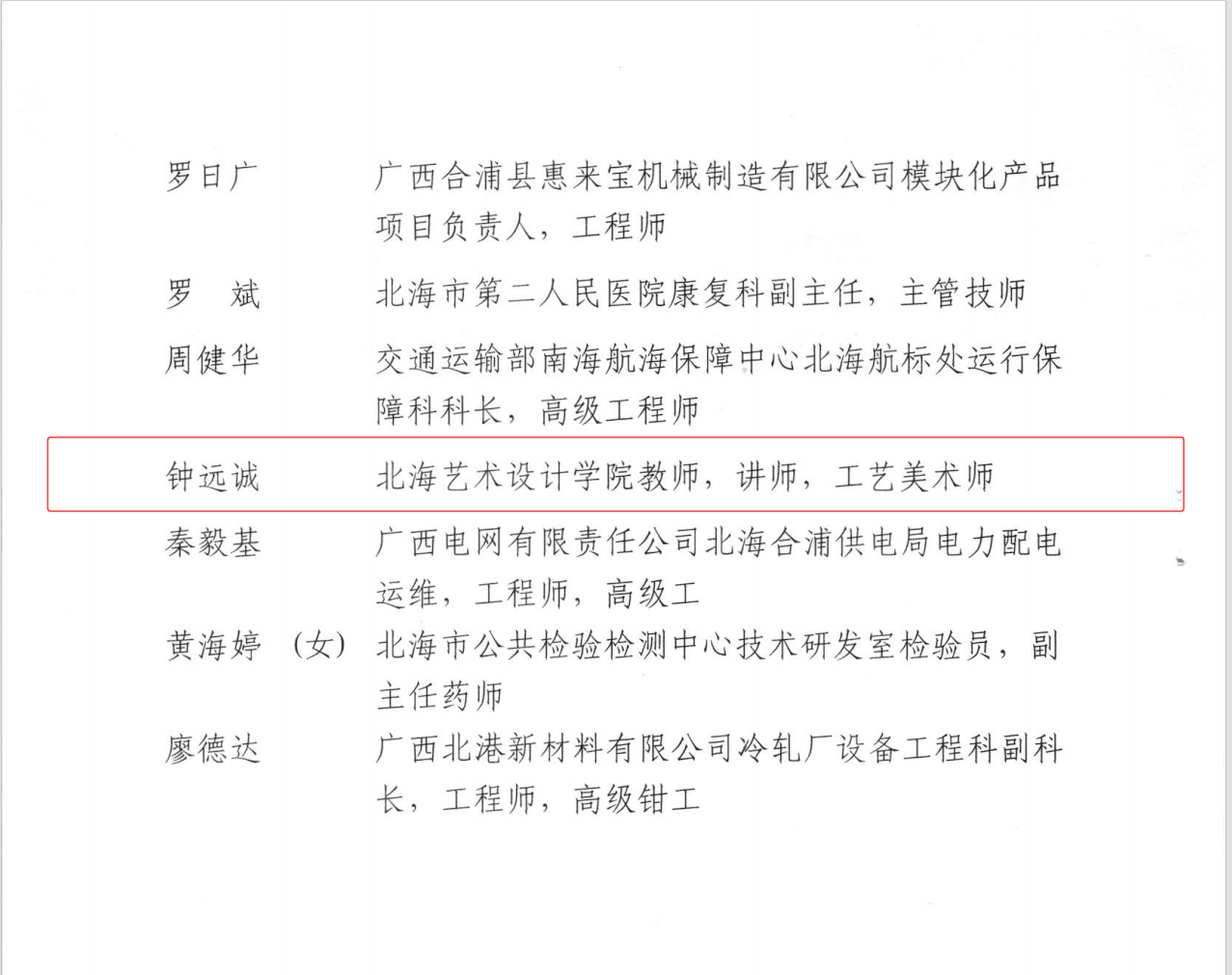 近日,北海市总工会、市人力资源和社会保障局等五部门联合发布《关于命名2025年“北海工匠”的通报》,我校设计艺术学院产品设计专业教师钟远诚凭借卓越的专业成就与匠心精神,从全市众多候选人中脱颖而出,成功入选2025年“北海工匠”名单。