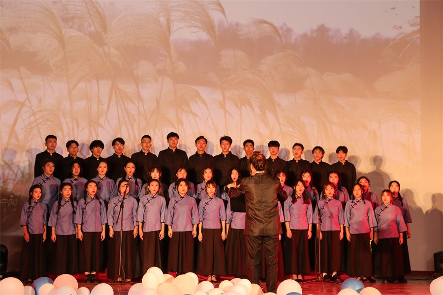 此次活动演出高举“爱党爱国爱社会主义”的思想旗帜,选用具有历史时代记忆的红色歌曲,回顾中国共产党团结和带领全国各族人民,进行革命、建设、改革的光辉历史和丰功伟绩。人文教育学院2019、2020、2021级艺术教育专业音乐班全体学生参演,本次演出既是艺术教育专业声乐课程课堂思政的一次教学成果展示,也是人文教育学院学生展现爱党爱国、奋发图强的高远志向,以青春昂扬的精神面貌喜迎党的二十大的生动体现。