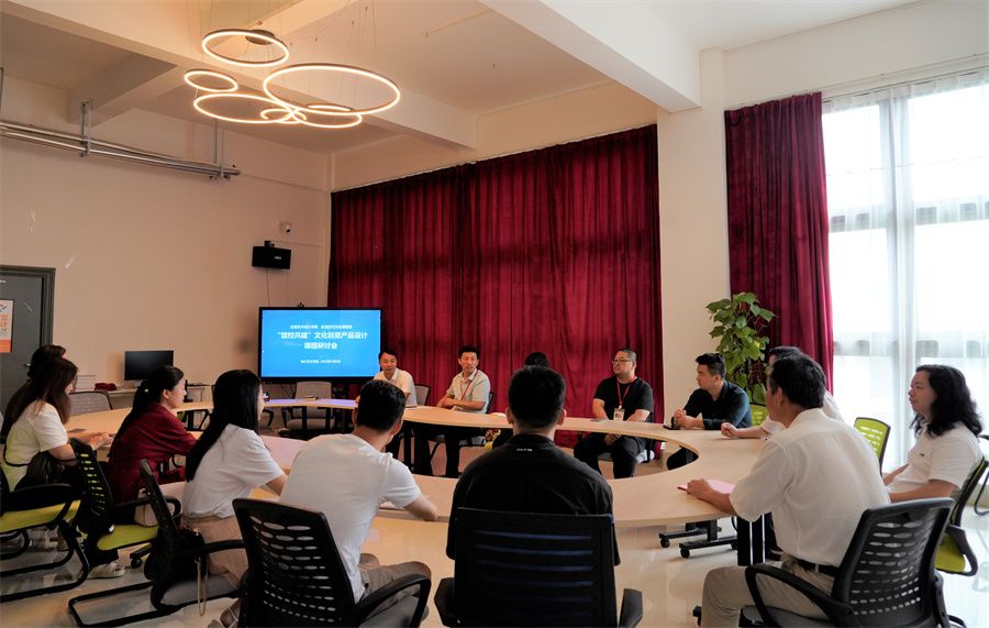 随后,廉世明馆长在我校设计艺术学院创意工作室与设计艺术学院骨干教师们就文创产品设计课程教学成效、教学方法以及课程项目合作事项展开交流。